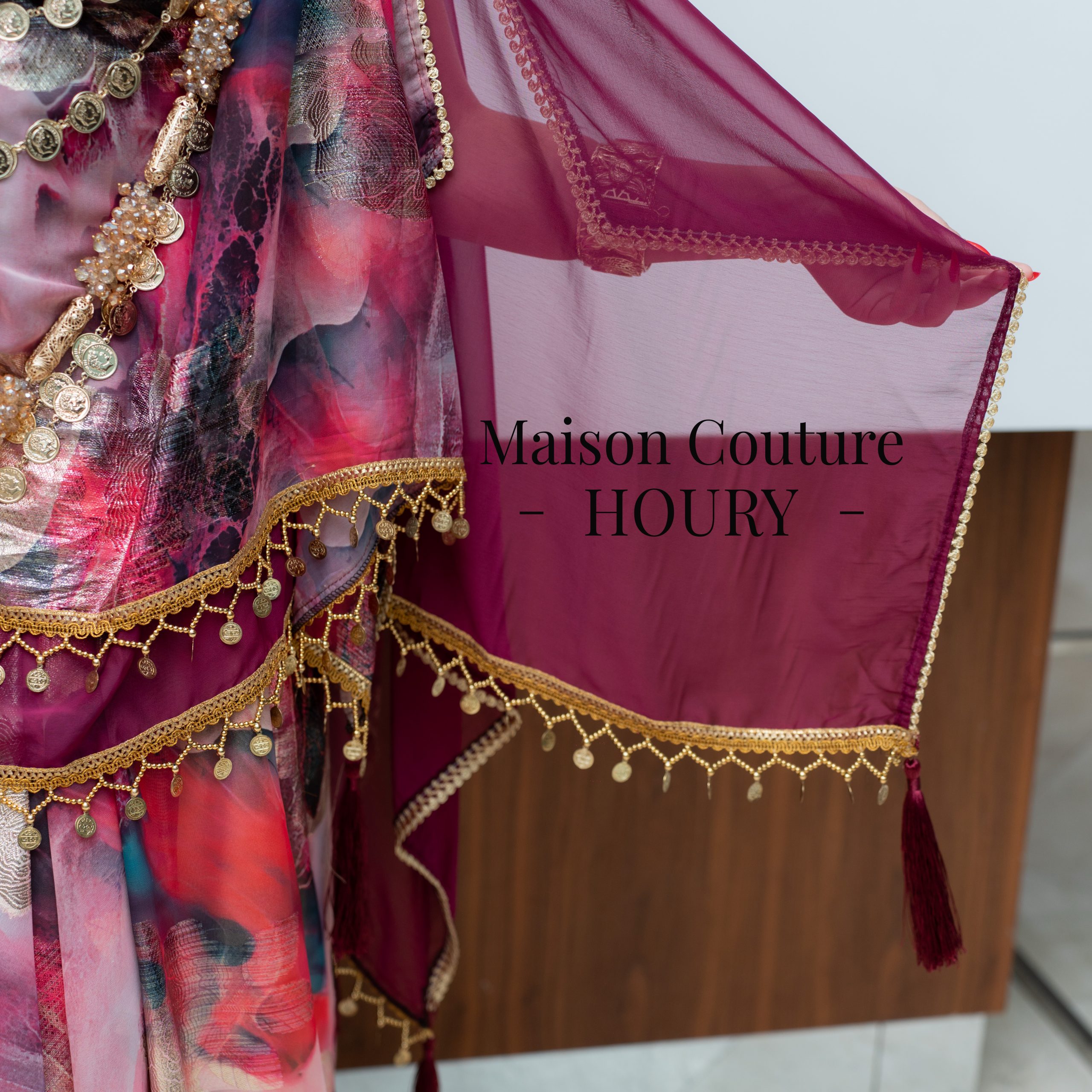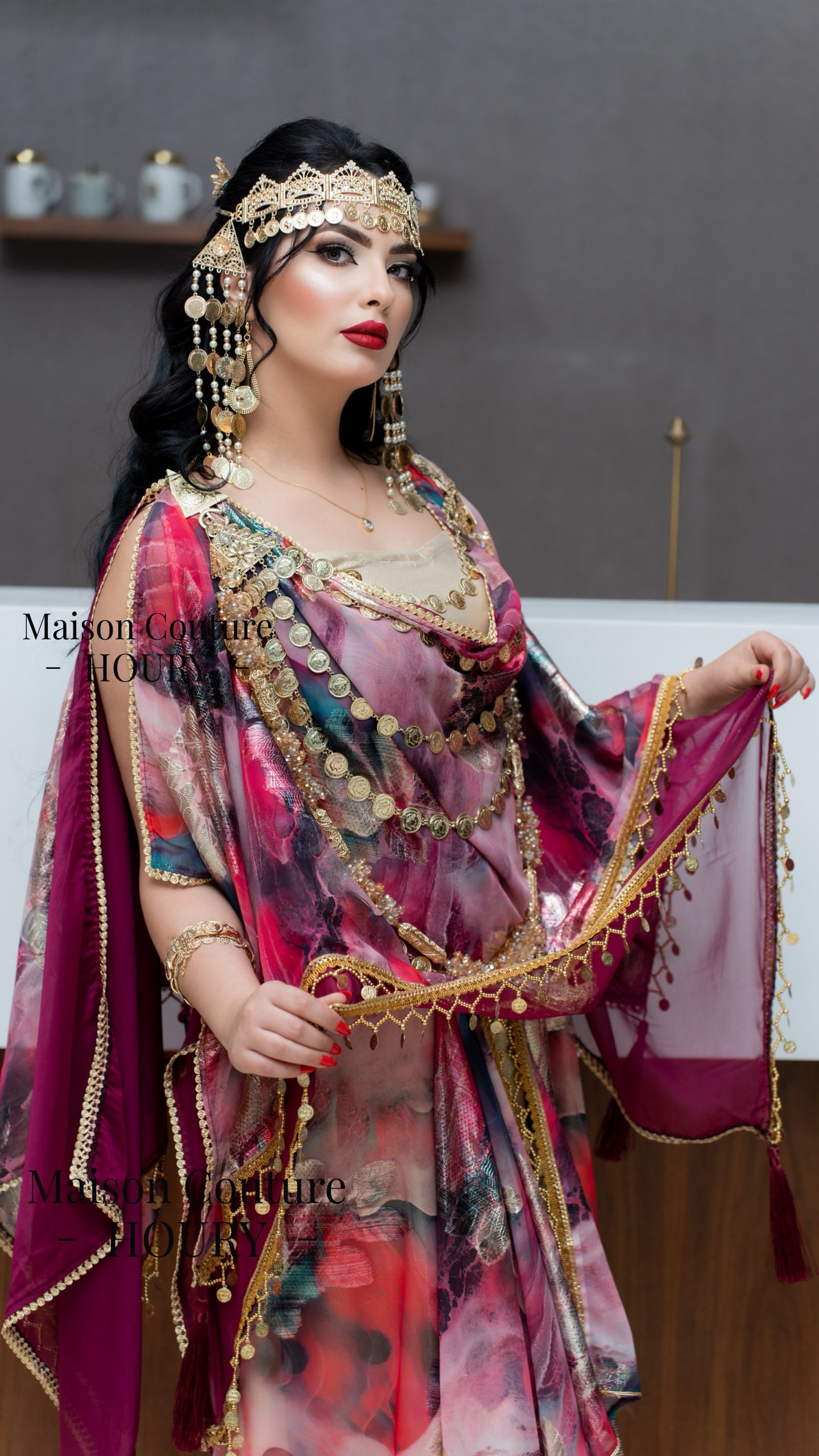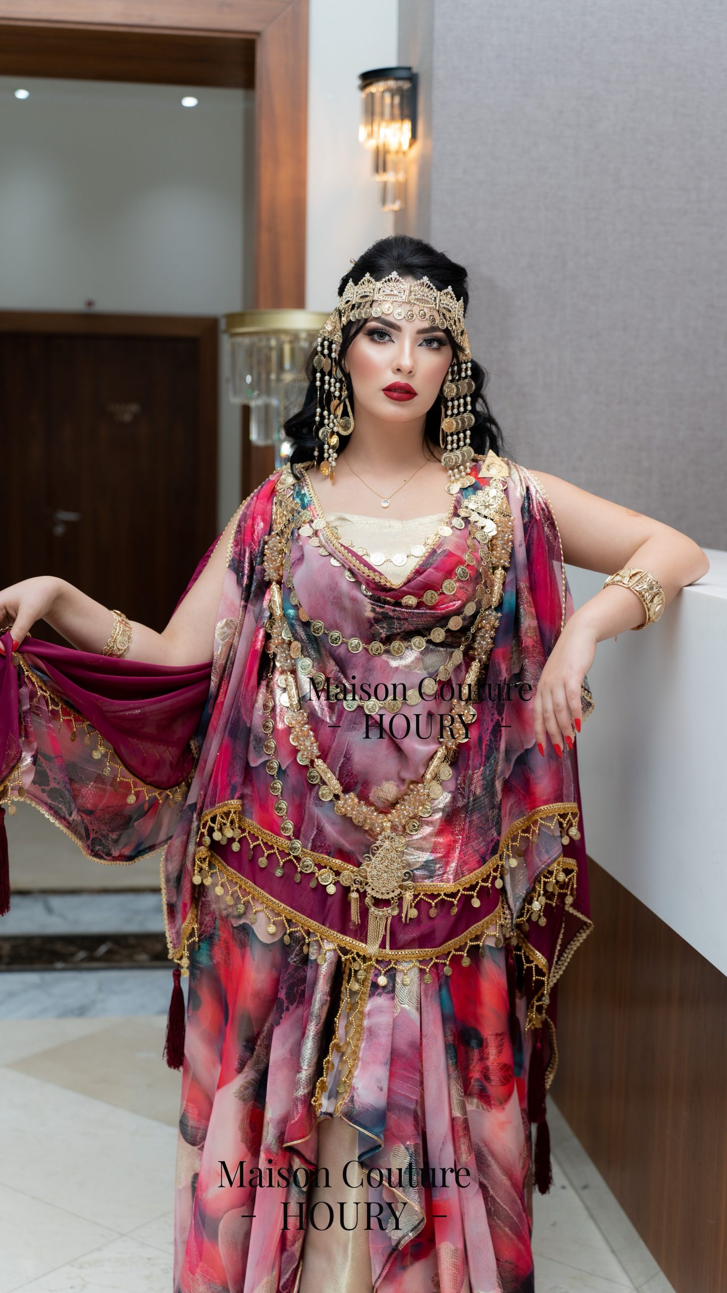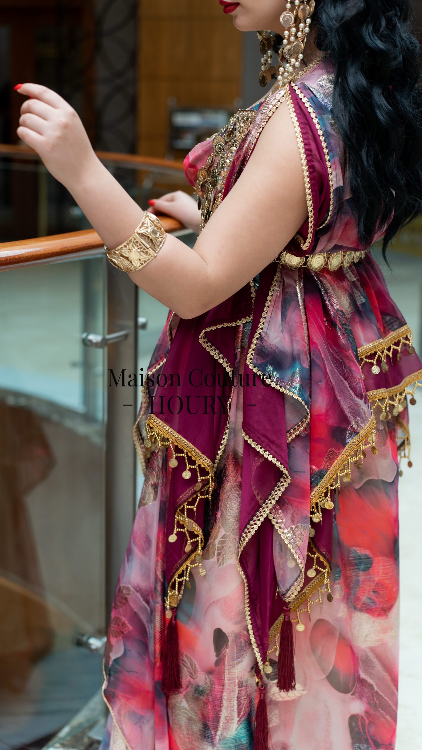 Elegance et tradition se rencontrent dans notre somptueuse robe Flowers, une pièce e rafinée du patrimoine CHAOUI. Composée de trois pièces distincts, cette tenue incarne la grâce et le raffinement.